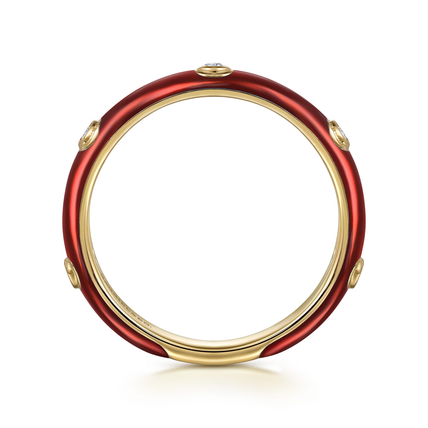 Bezel Set Diamond Stackable Ring with Chrome Red Enamel