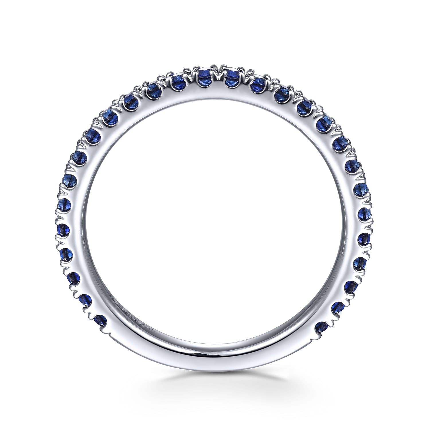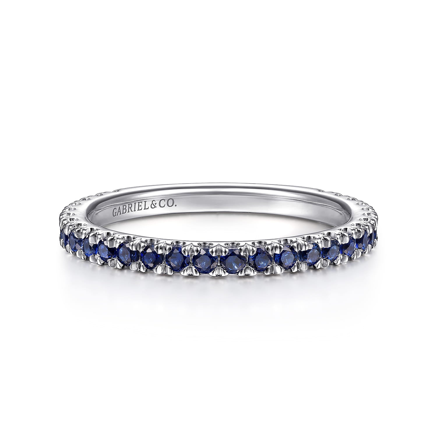 A timeless stackable ring with a sleek straight silhouette and dozens of glamorous sapphires. Crafted from luxe 14K white gold, this September birthstone ring effuses any ensemble with a pop of vibrant blue color.