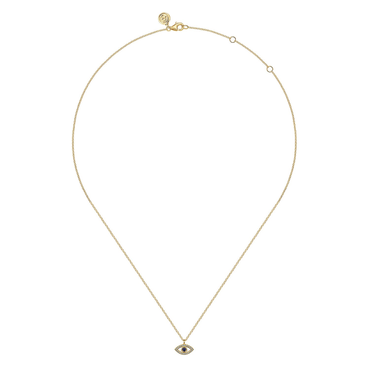 Blue Sapphire Evil Eye Diamond Pendant Necklace