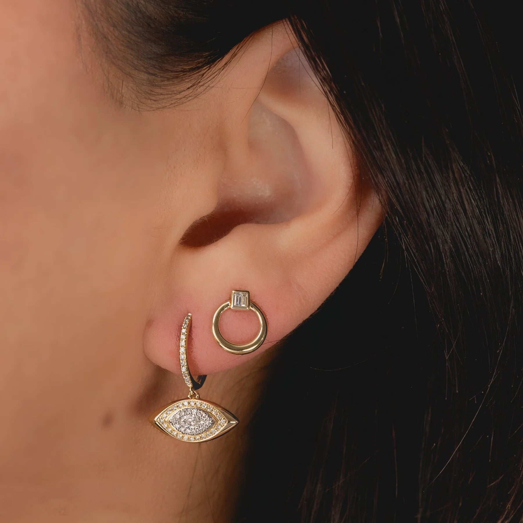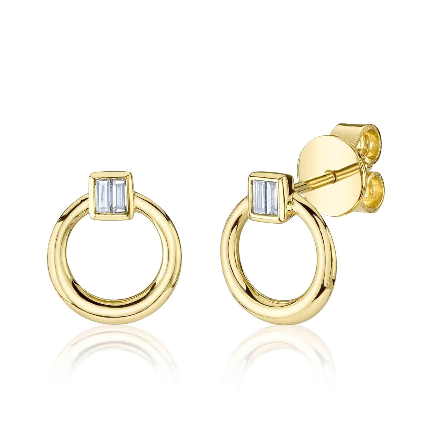 Diamond Baguette Circle Stud Earrings