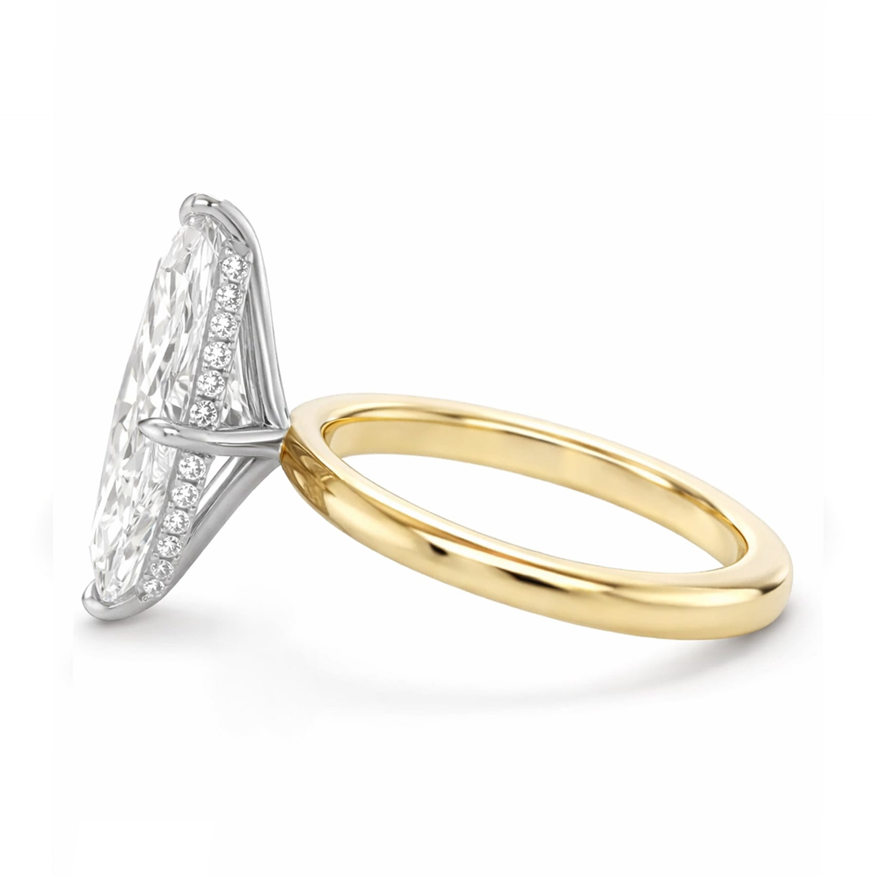 This ring is a classic with a unique twist. Featuring a delicate hidden halo this ring is for those who love a timeless look with thoughtful details that will set them apart from a traditional solitaire. As with all JBJ Collection rings, this ring is built up to stack a band that is approximately 2mm in thickness.