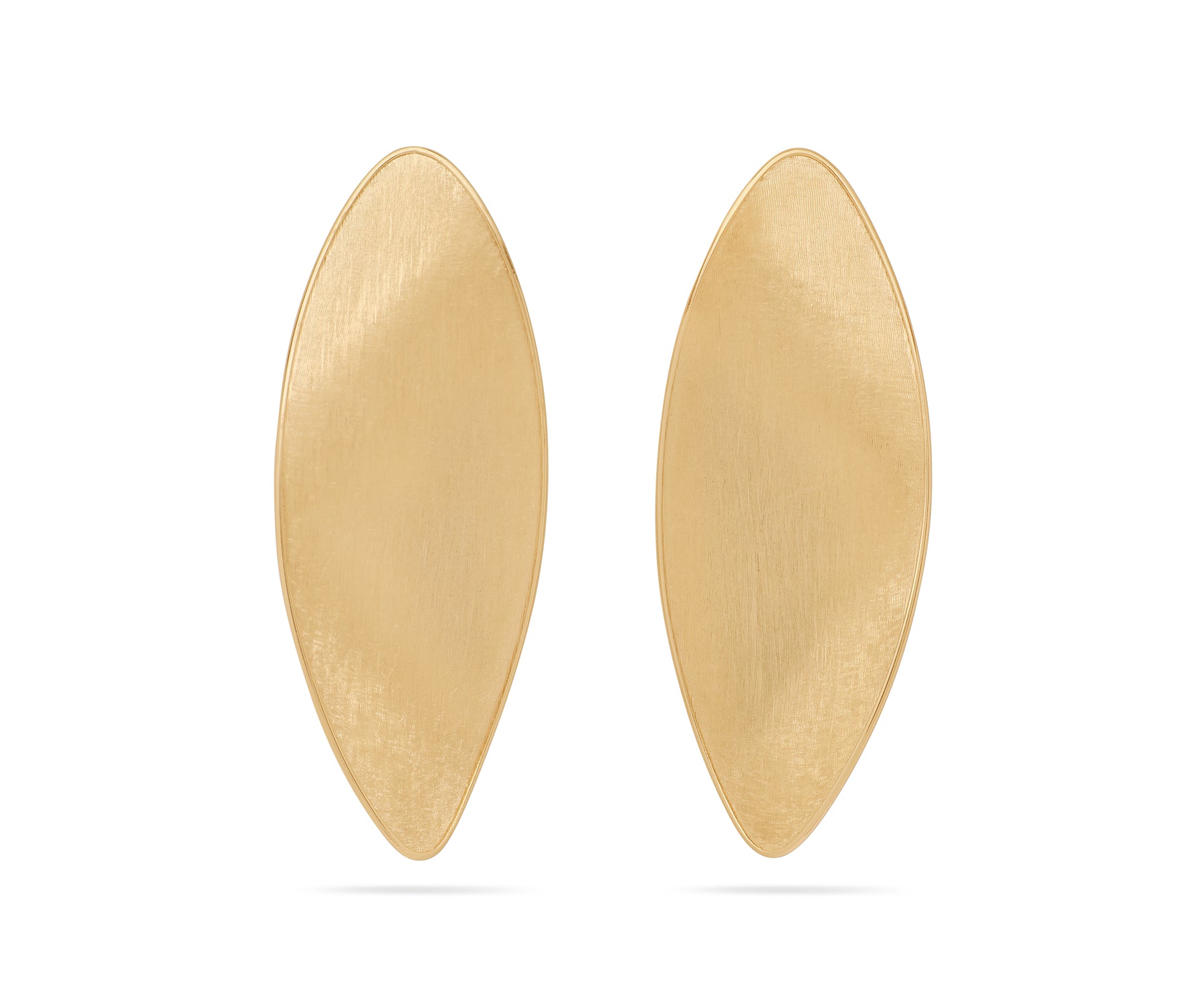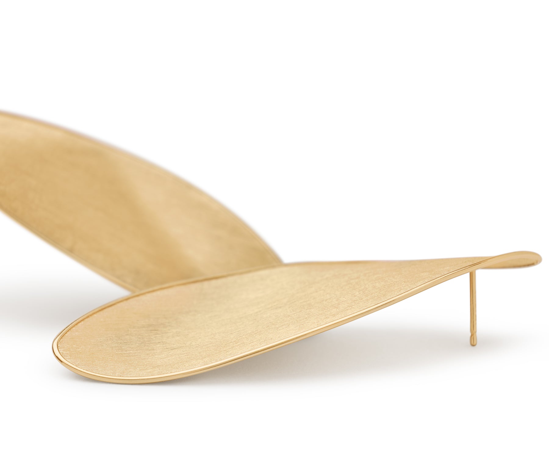 Bold and sculptural, these 18K yellow gold stud earrings showcase elongated twisted leaves hand-engraved in the ancient Florentine tradition. The distinctive shape and reflective finish add a refined touch to any look.