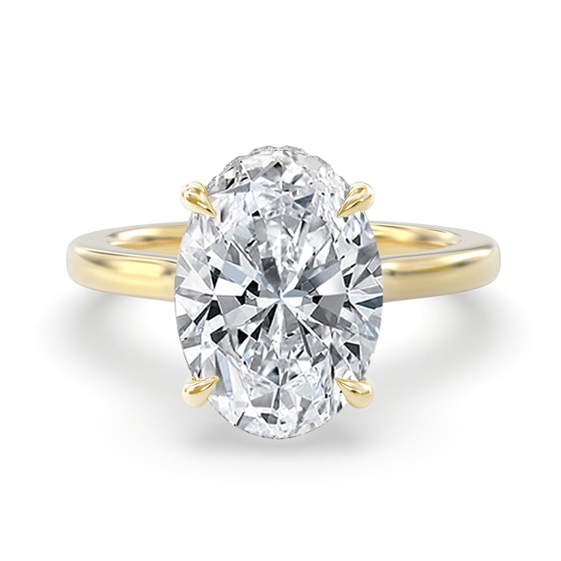 Named after our owner Kim, this ring is a unique take on a classic solitaire featuring a hidden halo. This ring showcases a joined-together design where the band is continuous into the crown leaving an open space under your diamond for a perfect visual of all the parts of your center stone. As with all JBJ Collection rings, this ring is built up to stack a band that is approximately 2mm in thickness.
